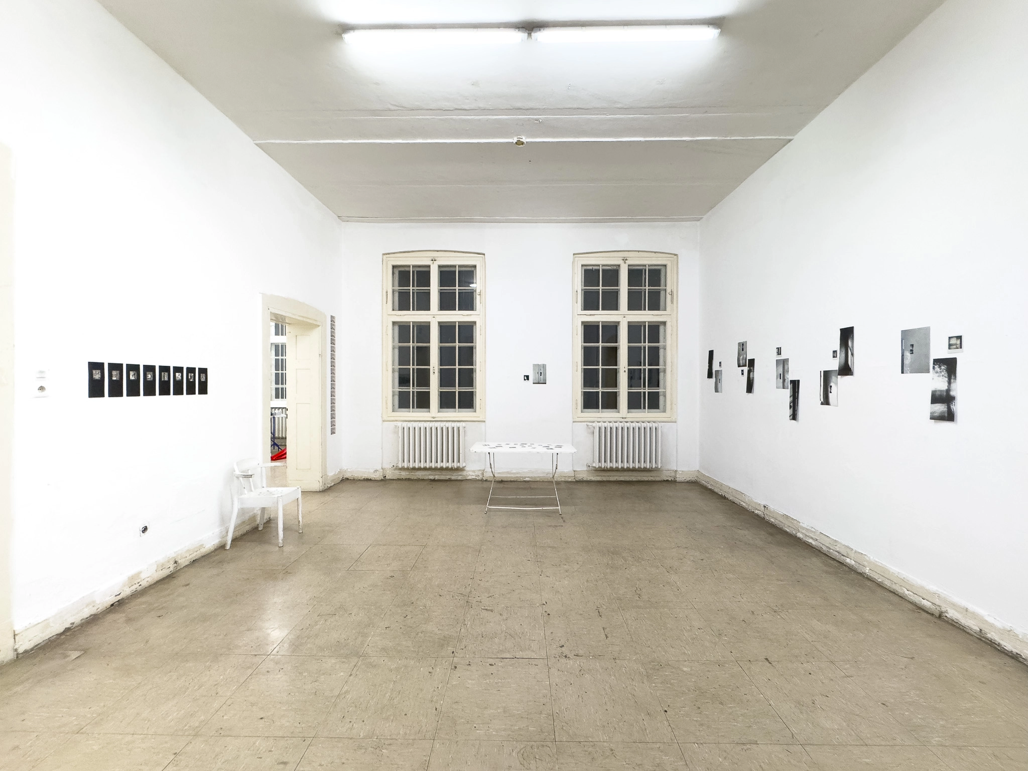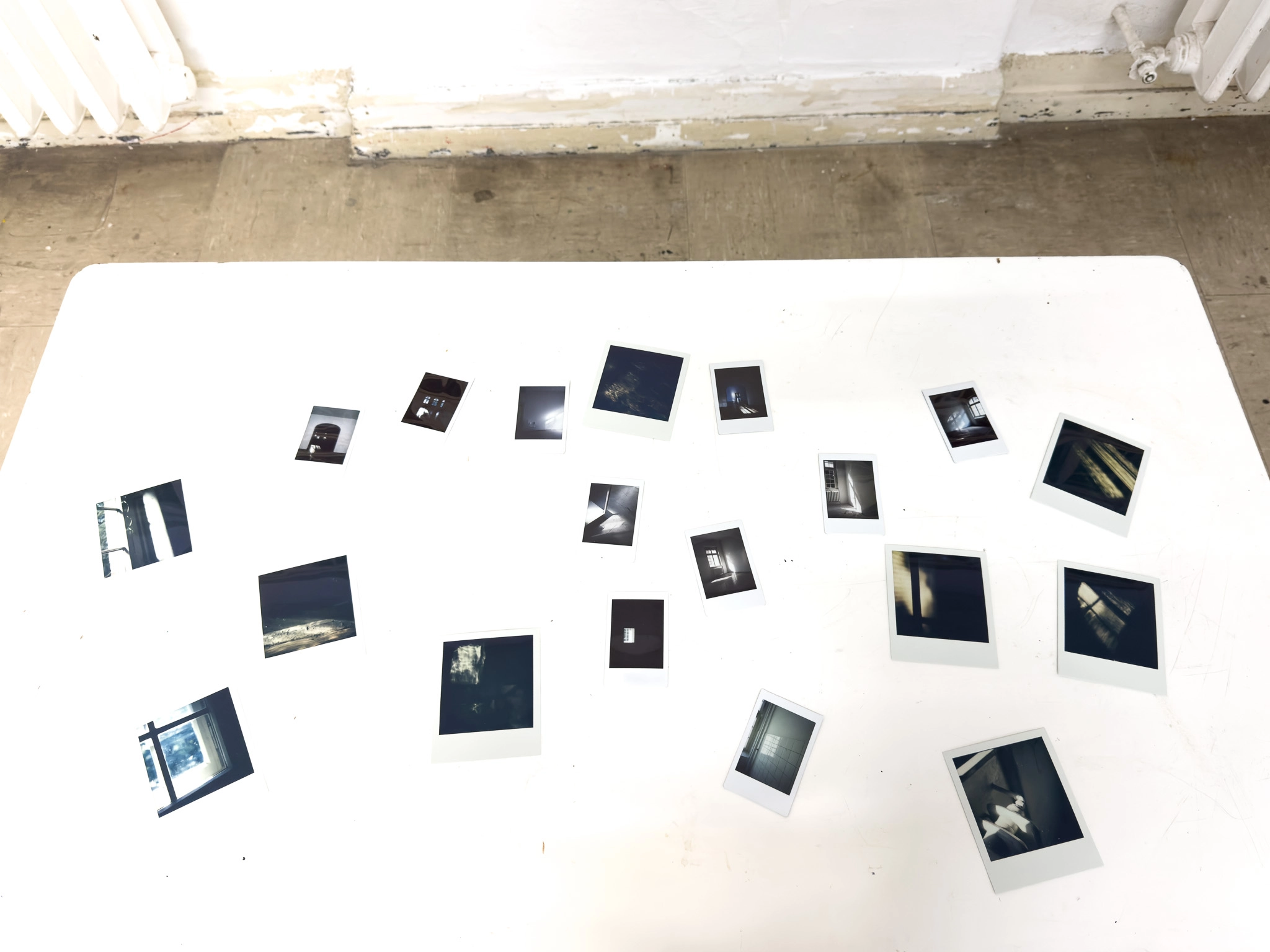 Dieser Zwischenraum interessierte mich und bildete den Kern meiner Multimedia-Installation. Mit Tusche bemalte Papierbahnen dienen als Projektionsfläche und lassen einen Raum entstehen, eine GrauZone, in der Bilder zu sehen sind, die man nicht einordnen kann und die Spielraum lassen, zwischen den Zeilen zu lesen. Ergänzend sind Polaroids zu sehen, die Szenen aus den Nachrichten zeigen sowie eine 3D Animation mit Sound. 2021