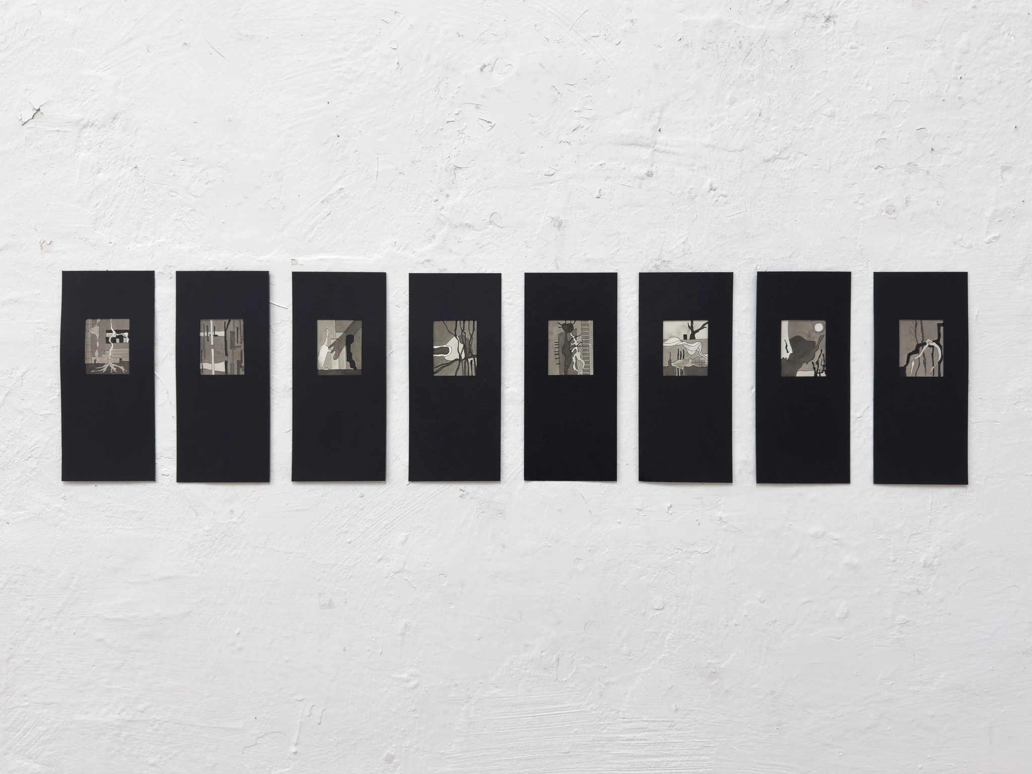 panta rhei, Digitaldrucke von eingescannten Papiernegativen auf Aludibond, verschiedene Größen, 2022